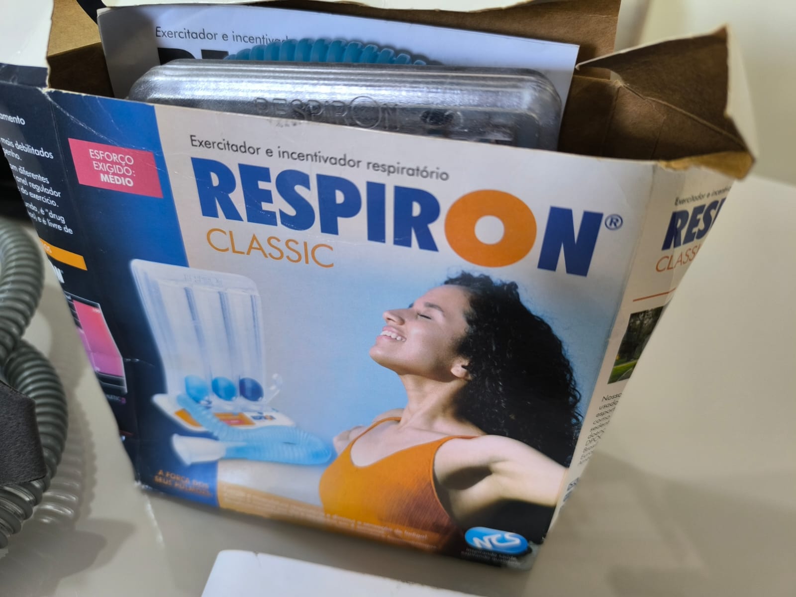 Acessórios inclusos: Cabo de Alimentação, Bolsa de Transporte, Máscara, Traqueia, Exercitador para respiração e Manual do Usuário.
